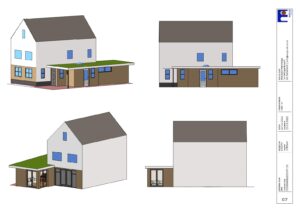 Meerdere tekeningen en aanzichten. Met maatvoering voor de vakman/ aannemer.